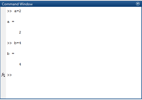 In the above figure of the command window, shows executed commands a = 2 and b = 4.